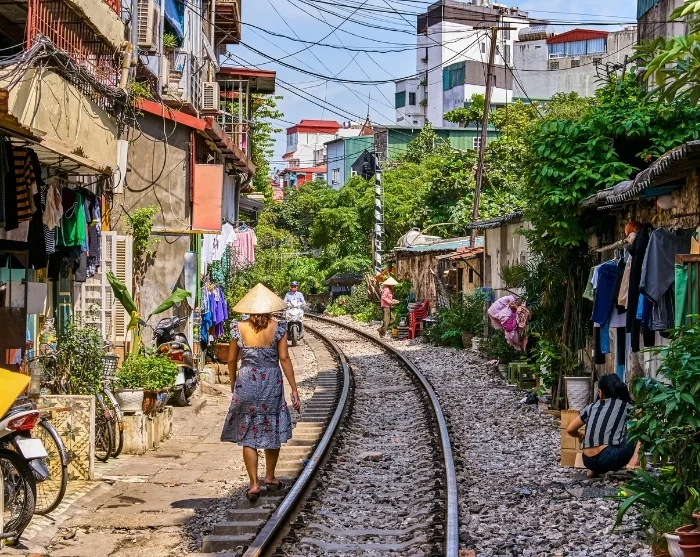 Begin de ochtend vroeg met een bezoek aan de beroemde Train Street, wanneer het nog rustig is en de sfeer ontspannen. Hier raast de trein vlak langs kleine cafés – een bijzonder tafereel dat u een uniek inkijkje geeft in het dagelijks leven voordat de stad echt ontwaakt.
