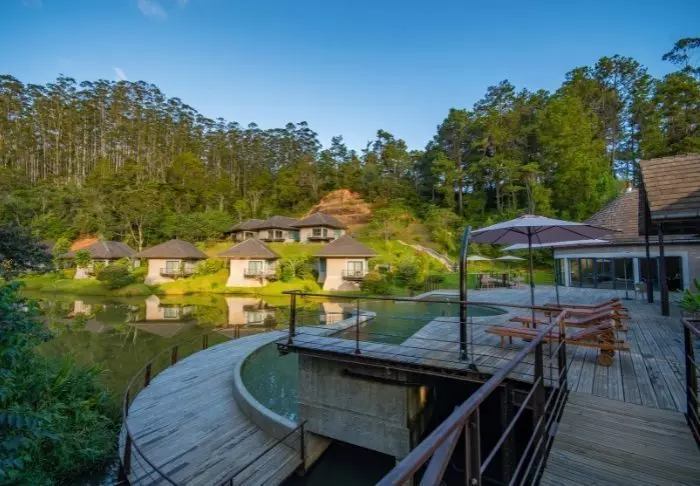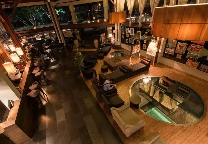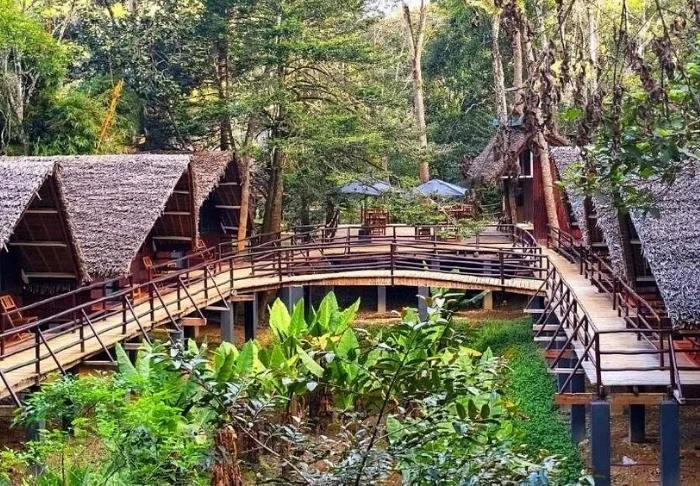 De lodge op zich is daarentegen zeker een bezoek waard. Er zijn 28 bungalows, die eenvoudig zijn ingericht met een bed met klamboe, plafondventilator, kluis en minibar. De grote trekpleister is de ligging midden in het regenwoud, en in het bijzonder het restaurant, dat een veranda heeft die over een klein meer is gebouwd.