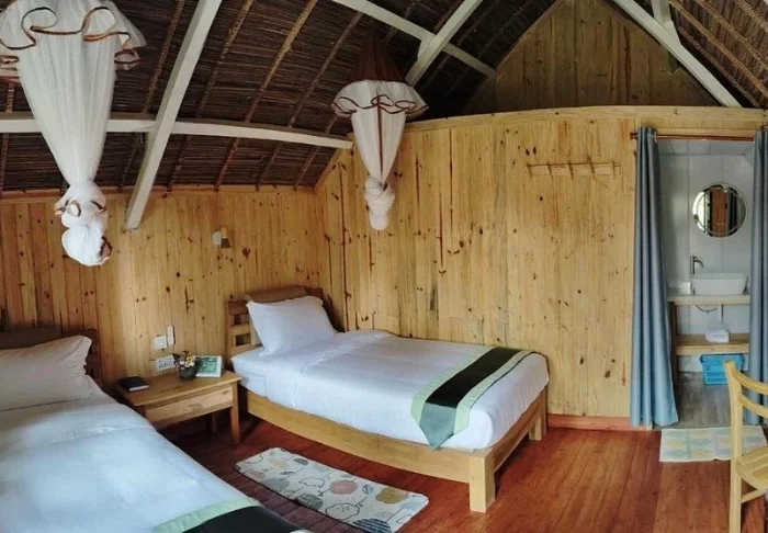 Hier zijn negen individuele bungalows, die allemaal zijn gebouwd van steen en rieten daken hebben. De bungalows zijn gezellig gemeubileerd en gedecoreerd in natuurlijke kleuren. Er hangen klamboes boven de bedden en er is een kluis en een ventilator. Er is geen airconditioning, maar door hun houten constructie en rieten daken is er bijna altijd een comfortabele temperatuur in de bungalows.