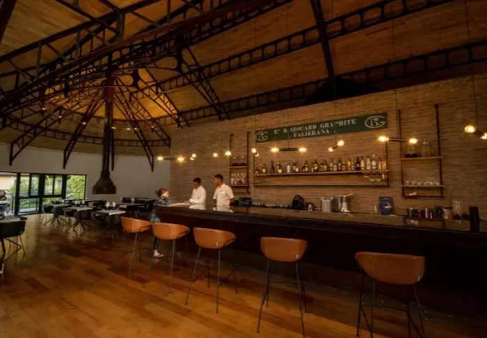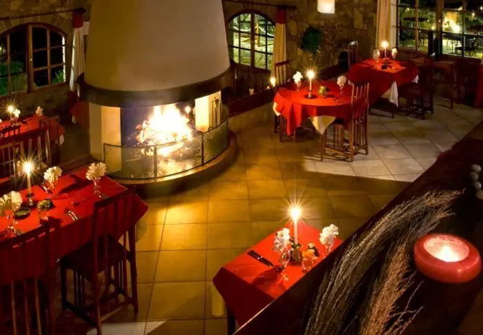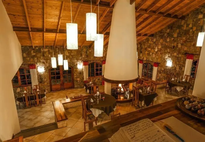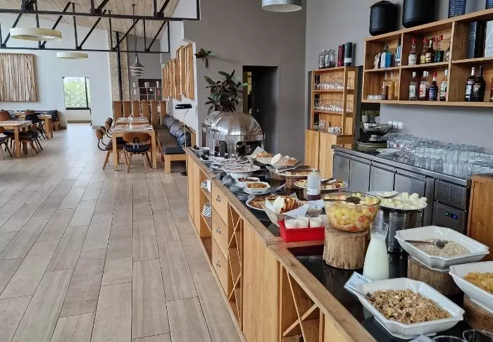 De maaltijden worden genuttigd in het restaurant, dat bijna doet denken aan de mensa van een kostschool, met lange tafels en een loungegedeelte waar je gezellig kunt zitten en genieten van een drankje voor het diner.