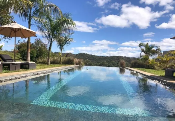Vanuit het zwembad kun je een glimp opvangen van de zee en de eigen tafelberg van Madagaskar, die zo plat is als een pannenkoek. Boven de lobby bevindt zich een loungegedeelte dat je uitnodigt om te ontspannen op de sofa, een goed boek te lezen en te genieten van het prachtige uitzicht.