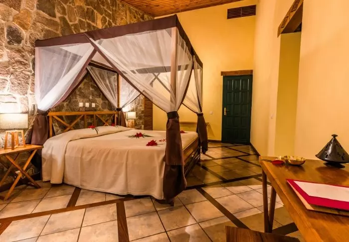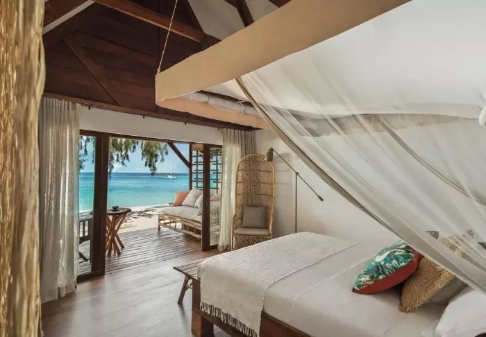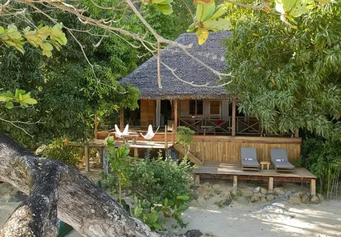 Het eiland is niet helemaal verlaten. Ongeveer 4.000 inwoners wonen hier, en er is een bescheiden selectie aan hotels. Een van de absolute toppers is Tsara Komba.