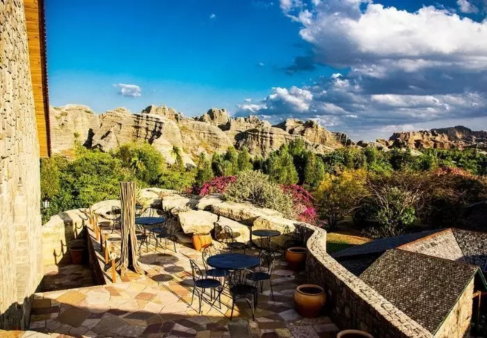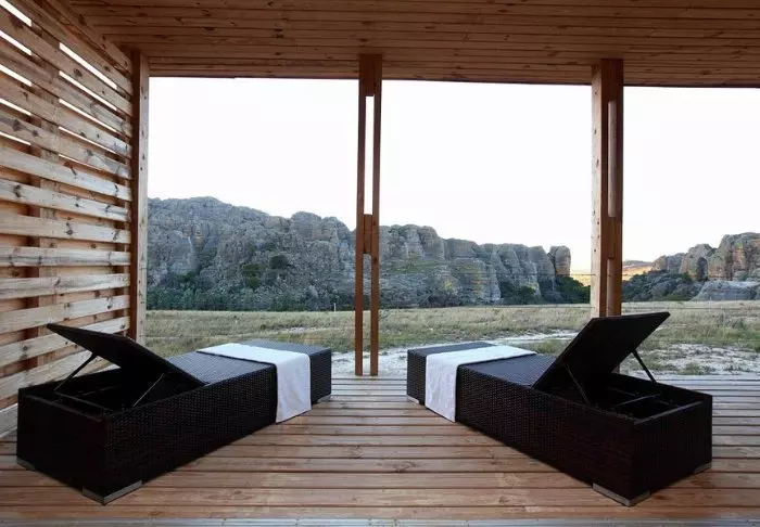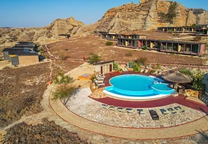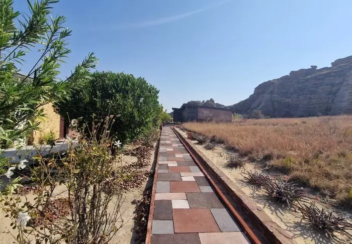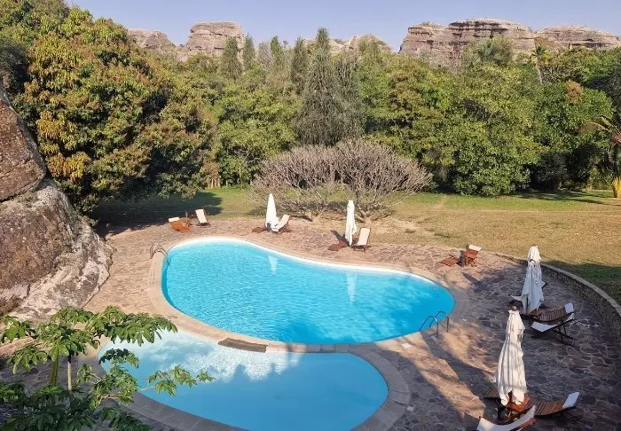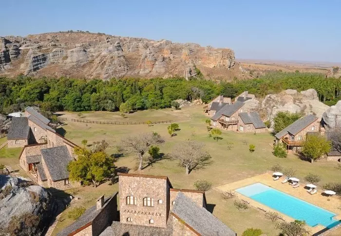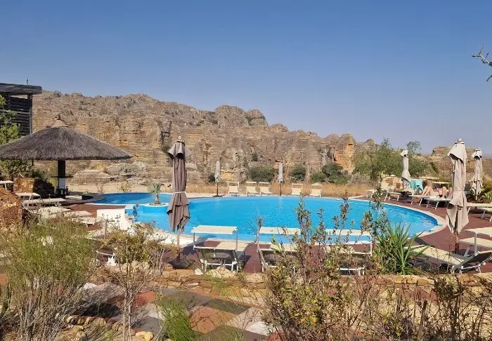 Net als het zusterhotel Jardin du Roy is het Relais de la Reine gebouwd van graniet, wat goed past bij het omringende landschap in Isalo.