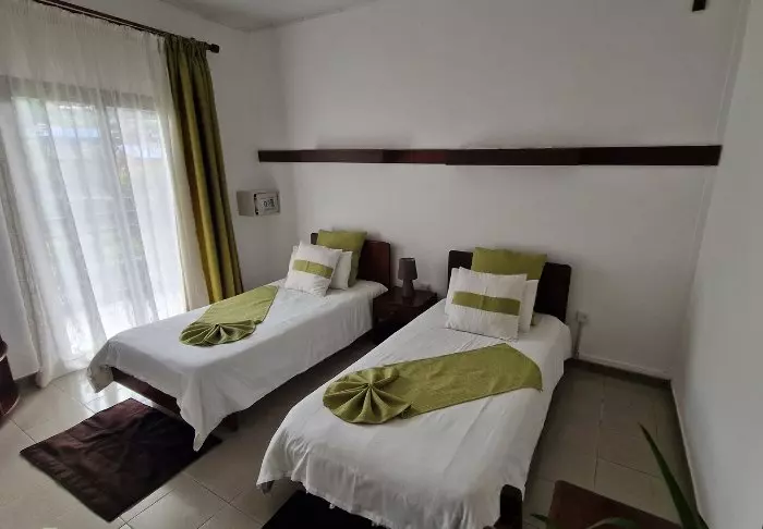 De kamers zijn van een redelijk formaat en zijn voorzien van faciliteiten om thee en koffie te maken, evenals airconditioning en een ventilator. Houd er rekening mee dat de stroom midden in de nacht voor een paar uur wordt uitgeschakeld. Zorg er dus voor dat u uw elektronische apparaten ‘s avonds oplaadt.