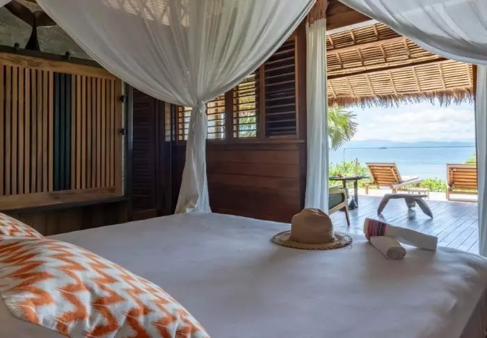 Er zijn hier slechts 8 bungalows, dus als je ervan droomt om naar Tsara Komba te upgraden, zorg dan dat je ruim van tevoren boekt! Elke bungalow is vervaardigd uit natuurlijke materialen die naadloos opgaan in de palmbomen van het regenwoud, bougainvillea en jasmijn, met adembenemend uitzicht op de zee vanaf de veranda. Het is vermeldenswaardig dat er geen airconditioning is (maar wel een ventilator), maar geheel in Malagassische stijl kunnen deuren en ramen worden geopend om een koele luchtstroom door de suites te creëren.