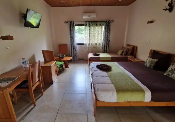 De kamers zijn voorzien van airconditioning en wifi – hoewel de airconditioning alleen ‘s nachts werkt.