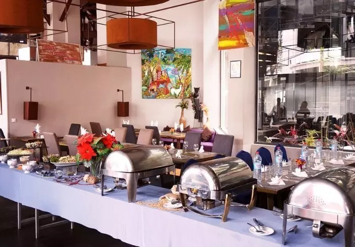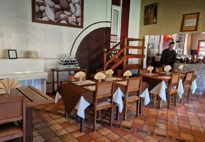 Het keukenpersoneel is echter speciaal geselecteerd voor hun taken. Het gezellige restaurant biedt goed bereid ontbijt, lunch en diner, en de koffie is werkelijk voortreffelijk! Er is ook een kleine bar die wijn en eenvoudige cocktails serveert. Als het weer het toelaat, ga dan naar het dakterras om van het uitzicht – en mogelijk de zonsondergang – over Tana te genieten.