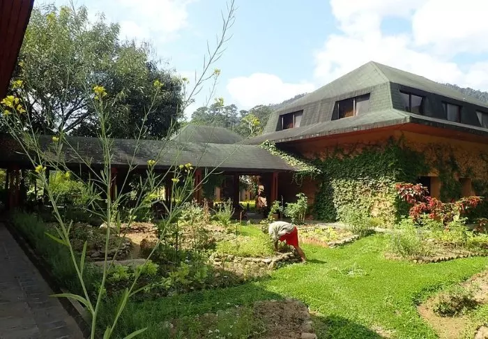 Van buitenaf ziet de lodge eruit als iets dat je zou verwachten in Barcelona. Gaudí’s zachte, organische vormen hebben de architect duidelijk geïnspireerd.