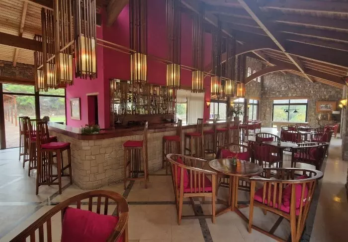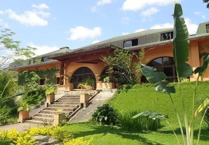 Het hotel ligt op een heuveltop en vanuit de lounge en het restaurant heb je een prachtig uitzicht op het nationale park. De kamers liggen achter het hoofdgebouw zelf, met toegang via paden door de weelderige tuin.