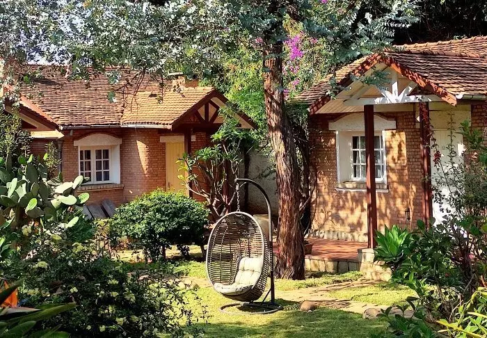 De 18 kamers zijn gecentreerd rond een zeer charmante tuin met bankjes en tuinstoelen. Hier en daar huppelt een konijn rond tussen de kleurrijke bloemen.