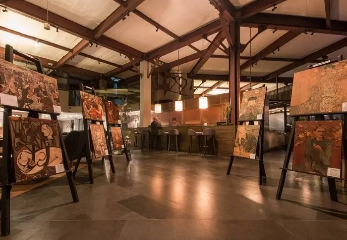 Op de tussenverdieping zijn vaak ‘workshops’ waar lokale kunstenaars werken en hun kunst tentoonstellen – een goede gelegenheid om een uniek souvenir te kopen.