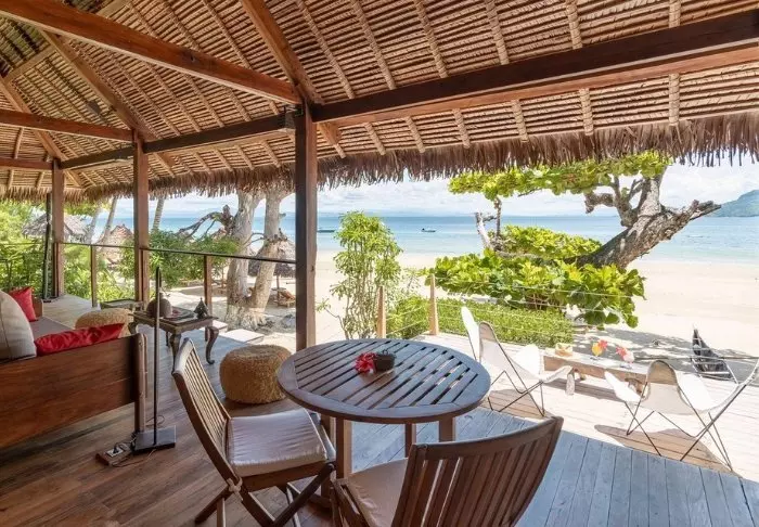 Alle bungalows zijn uitgerust met een eigen veranda met uitzicht en directe toegang tot het strand. Op de veranda staan ontspanningsmeubilair en elke bungalow heeft ook twee ligstoelen op het strand. Het ontwerp is in klassieke Malagasy stijl met veel hout en grote deuren die geopend kunnen worden om de bries door te laten en te ventileren.