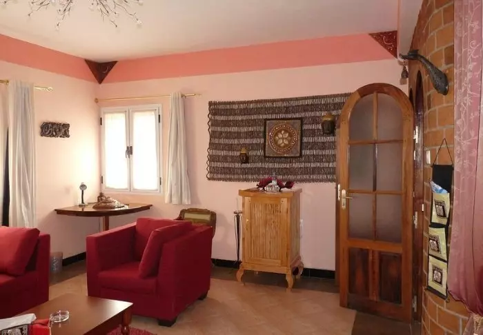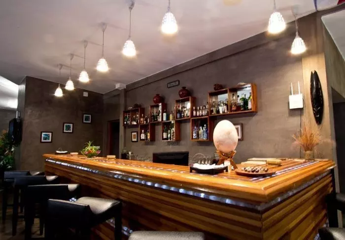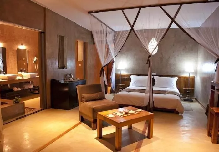Binnen voel je duidelijk de invloed van het Afrikaanse continent. Bruine tinten, hout en steen domineren, maar op een luxueuze en smaakvolle manier. Alles is prachtig ingericht en het voelt bijna alsof je bij een particuliere kunstverzamelaar op bezoek bent.