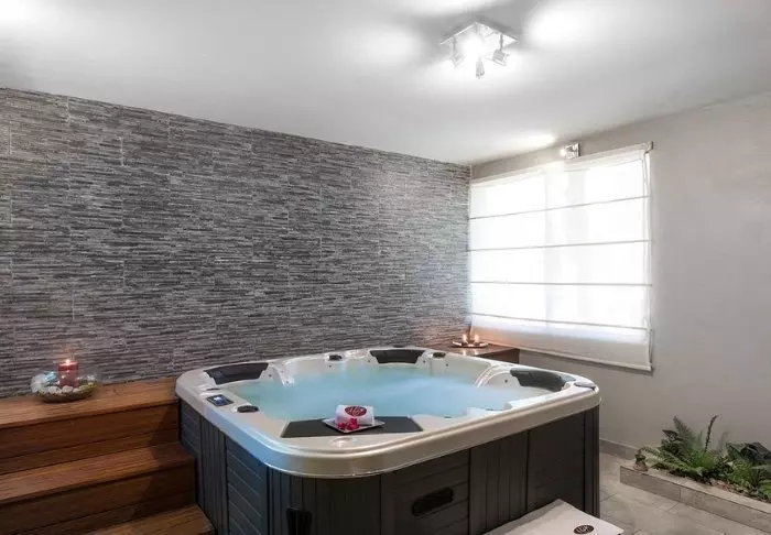 Als we onderaan beginnen, vind je in de kelder van het hotel een prachtige wellnessruimte met zwembad, hamam, jacuzzi en behandelkamer.