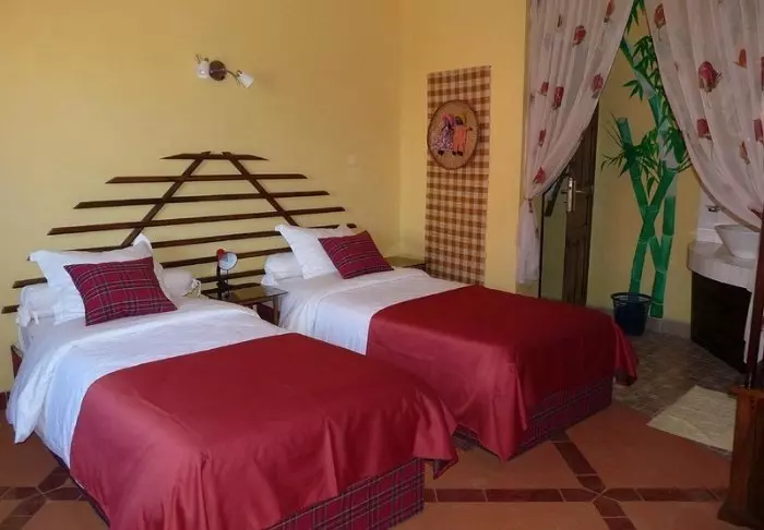 Er zijn 22 kamers met verschillende vormen. Alle kamers zijn echter ruim. Ze zijn ingericht met massief houten meubels met kleurrijke kussens, en vaak is er ook hout op de muren, die zijn opgesierd met kleurrijke gordijnen, zodat wat anders donker zou lijken, in plaats daarvan charmant is. De kamers hebben allemaal airconditioning, een kluisje, minibar, tv en wifi (voor zover het werkt).
