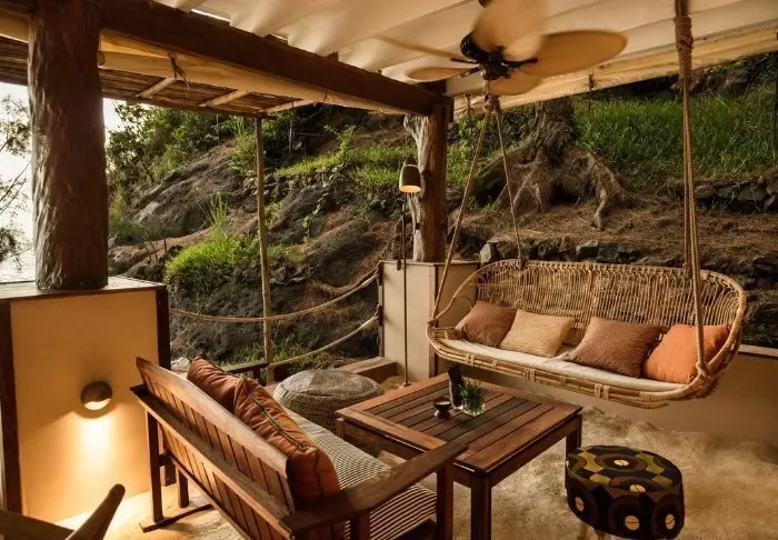 De bungalows zijn gebouwd van steen met rieten daken en palissanderhouten balken. Mooie, warme houten vloeren verwelkomen je binnen, waar de muren smaakvol zijn versierd met lokale kunst en kunstnijverheid. Net genoeg – maar niet zo veel dat het het uitzicht vanuit de grote ramen verstoort. Dankzij de ligging van de lodge aan het strand hebben alle bungalows uitzicht op het strand. Je kunt er ook van genieten vanaf je privéterras, waar je een paar ligstoelen vindt die klaar staan om gebruikt te worden.