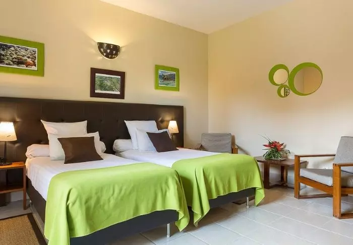 De kamers zijn smaakvol ingericht en voorzien van airconditioning, thee- en koffiefaciliteiten, minibar, kluisje – en veel ruimte. Alle kamers hebben een eigen balkon met meubilair, zodat je van dichtbij kunt genieten van de natuurlijke omgeving. Alle kamers hebben een badkamer met bad en douche.