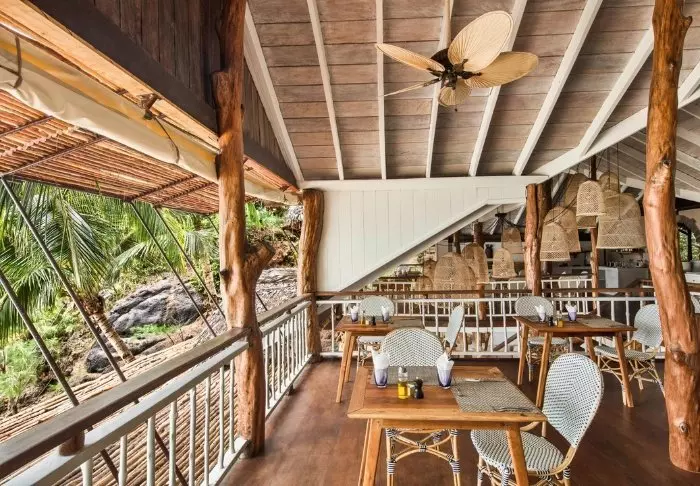 Het restaurant, eveneens omringd door regenwoud, serveert een mooie mix van lokale en Frans-geïnspireerde gerechten. Neem voor het diner een drankje in de gezellige lounge, waar spelletjes klaarliggen. Sluit de avond, als u wilt, af met een espresso en crème brûlée – natuurlijk bereid met vanille uit Madagaskar.