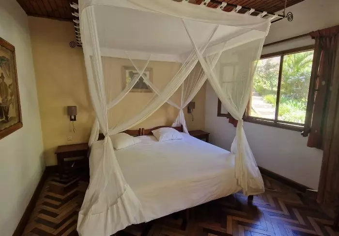 De 22 kamers zijn allemaal ingericht in traditionele Malagassische stijl – dat wil zeggen heel eenvoudig, met houten vloeren en houten meubels – en verder niet veel. Het hotel is mooi schoon, maar je moet niet veel meer verwachten dan een bed om in te slapen, lekker eten en hopelijk prima entertainment.