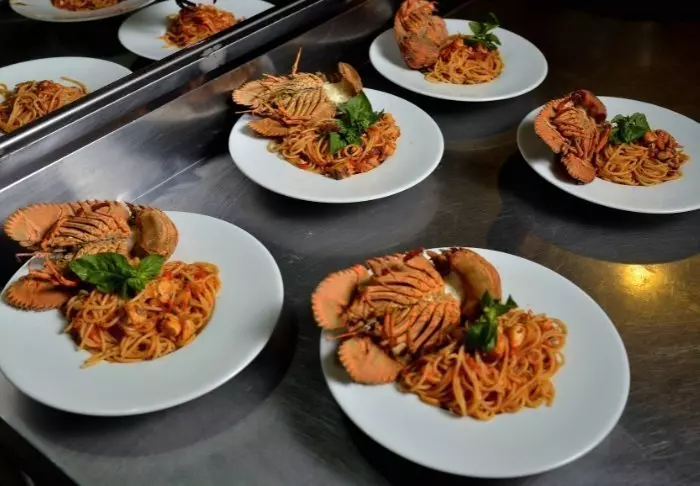 Het water is warm en turkooisblauw. Een paar lokale vissersboten dobberen in de golven – ze zijn net terug met de vangst van de dag – kreeft, garnalen en platvis.