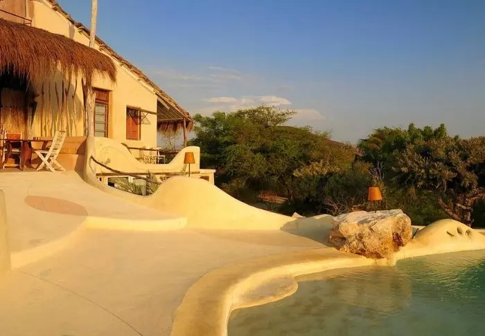 Van buitenaf ziet de lodge eruit als iets dat je zou verwachten in Barcelona. Gaudí’s zachte, organische vormen hebben de architect duidelijk geïnspireerd.