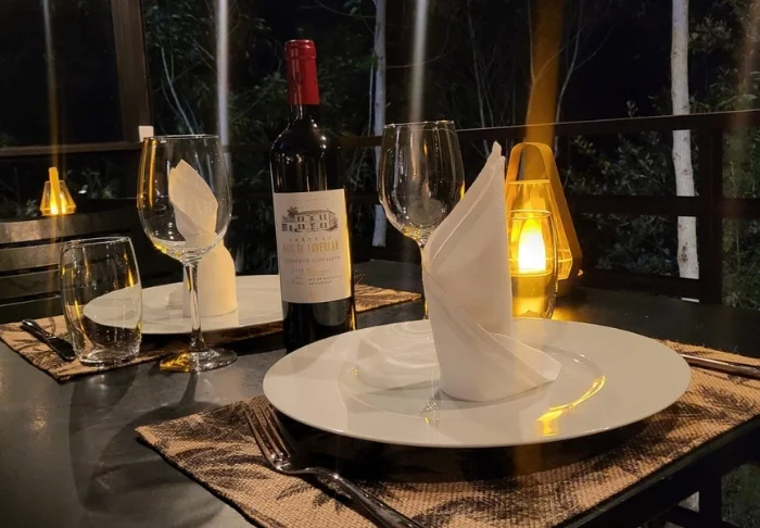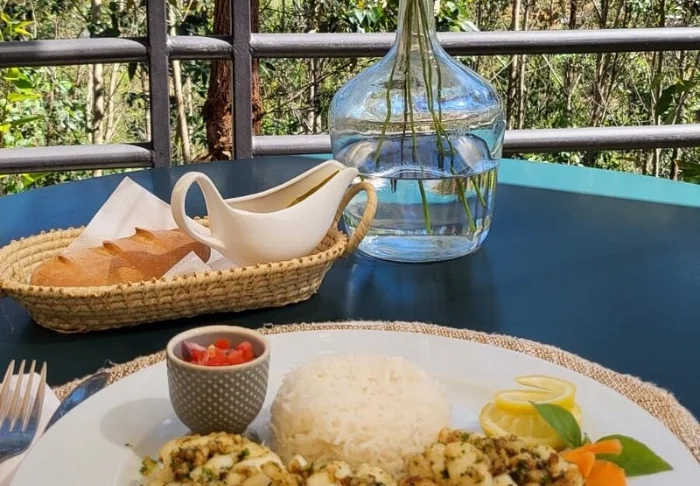 Het restaurant, eveneens omringd door regenwoud, serveert een mooie mix van lokale en Frans-geïnspireerde gerechten. Neem voor het diner een drankje in de gezellige lounge, waar spelletjes klaarliggen. Sluit de avond, als u wilt, af met een espresso en crème brûlée – natuurlijk bereid met vanille uit Madagaskar.