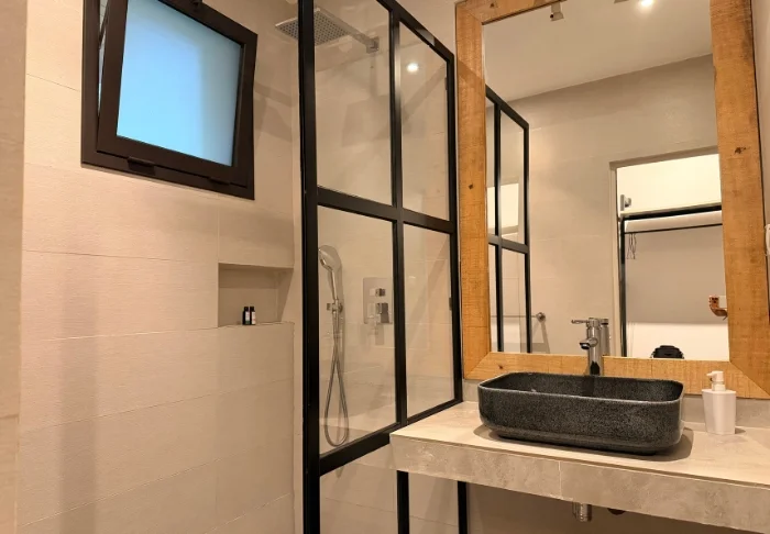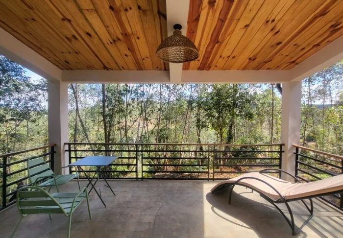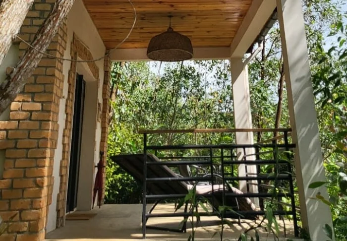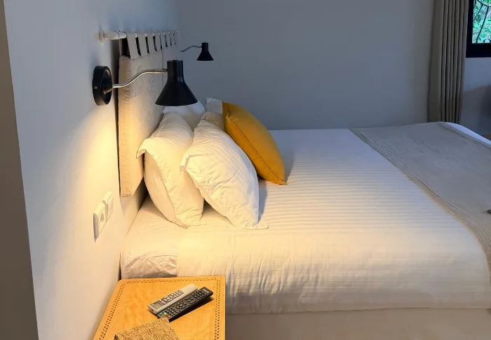 De kamers liggen op een heuvelhelling, omringd door regenwoud, en het interieur is licht en warm – een mix van Scandinavische eenvoud met een vleugje Bali.