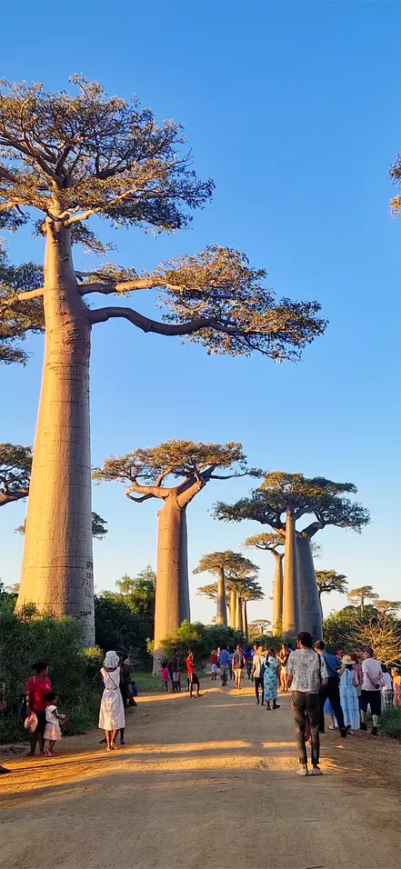 Na een onvergetelijke roadtrip door de steeds wisselende landschappen van Madagaskar, ontmoet u een ander wonder van de natuur: de imposante, eeuwenoude baobabbomen bij Morondava.