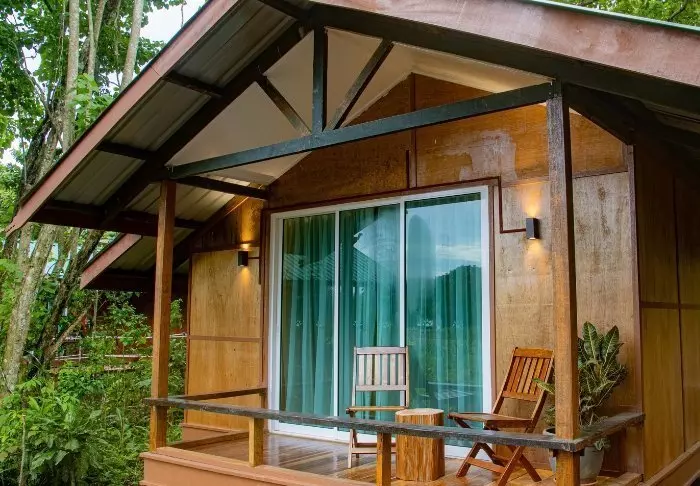 Je verblijft in een van de 16 ruime bungalows van de lodge, die verspreid liggen langs de rivieroever en grenzen aan het regenwoud. De rustieke gevels harmoniëren prachtig met de moderne inrichting, waar lichte muren worden gecombineerd met donkere details zoals houten vloeren en houten meubels. Elke bungalow met airconditioning heeft een thee- en koffiestation en een eigen badkamer met een douche met warm water en milieuvriendelijke toiletartikelen. Op je privéveranda kun je achterover leunen met een goed boek terwijl je geniet van de diepe rust van het regenwoud met uitzicht op de kabbelende rivier of het adembenemende regenwoud.