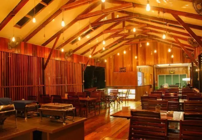 Geniet van lokale gastronomie op de halfopen houten veranda van de lodge, waar het restaurant een voortreffelijk menu presenteert met een adembenemend uitzicht over de Kinabatangan rivier. Een houten dek dat zich uitstrekt vanuit het restaurant nodigt je uit om van een drankje te genieten en de zon te zien ondergaan boven de rivier en het regenwoud, met de geluiden van de nacht op de achtergrond.