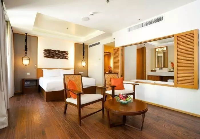 De suites van het resort zijn ruim en doordacht ontworpen. Grote ramen laten natuurlijk licht binnen en bieden schitterend uitzicht op het omliggende landschap. U verblijft standaard in de Damai Suite, die beschikt over een kingsize bed, een aparte lounge en een luxe badkamer met een bad en regendouche. Daarnaast zijn de suites uitgerust met moderne voorzieningen zoals airconditioning, wifi, minibar, kluis, flatscreen-TV en een thee- en koffiehoek, wat zorgt voor een comfortabel verblijf.