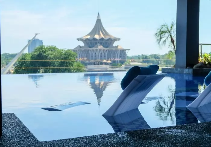 De verfijnde gevel van het hotel nodigt je uit in een warme en stijlvolle omgeving waar je je thuis zult voelen tijdens je verblijf. Hier kun je ontwaken met een adembenemend uitzicht op de Sarawak-rivier, terwijl de levendige sfeer van de stad zich net buiten je deur bevindt.