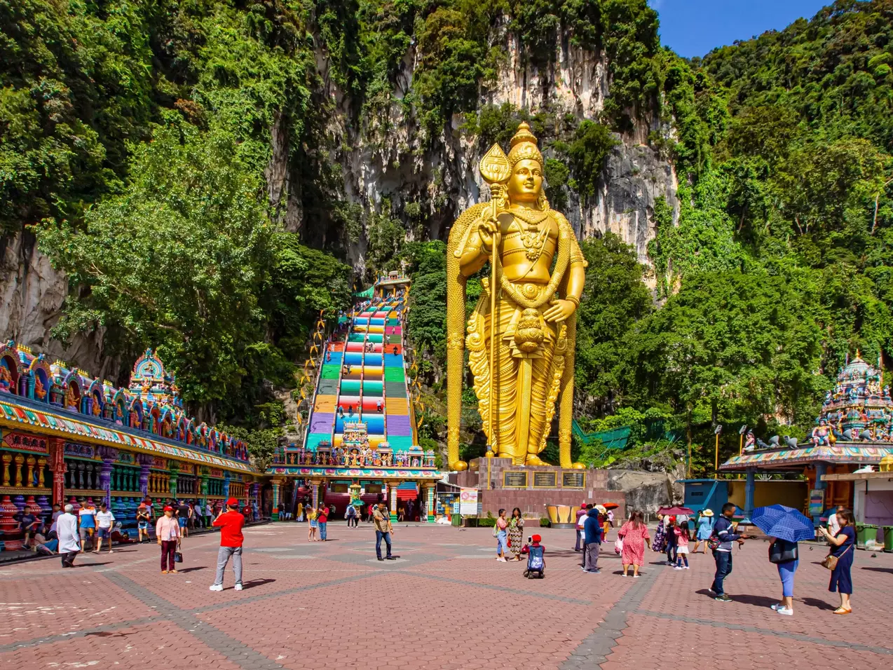 Net buiten Kuala Lumpur ligt een van de belangrijkste attracties van Maleisië, de kalksteengrotten bekend als de Batu Caves.