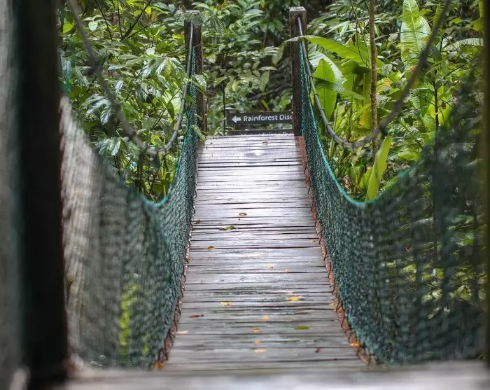 Bij aankomst begint u aan het uitgebreide netwerk van wandelpaden door het regenwoud, waar u de diverse vegetatie van het park kunt verkennen, variërend van mangroven tot tropische moerassen, rotsachtige en strandvegetatie. Tijdens uw reis, die wat ups en downs omvat, is het belangrijk om goed op te letten, want de unieke fauna van het nationaal park omvat zilverbladlangoeren, langstaartmakaken, baardzwijnen, varanen, slangen en tal van vogelsoorten. In het regenwoud van Bako kunt u ook het geluk hebben de rode neusapen van Borneo tegen te komen; hoe groter de neus, des te aantrekkelijker het mannetje is voor de vrouwtjes.