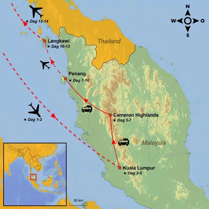 Deze reis toont de absolute hoogtepunten van Maleisië: van het bruisende hart van Kuala Lumpur en de serene Cameron Highlands tot het culturele lappendeken van George Town en de uitnodigende zandstranden van Langkawi.