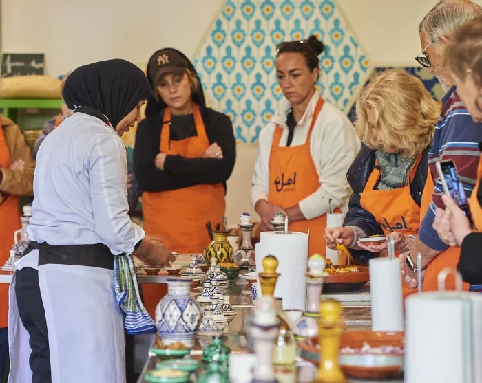 Wat later op de ochtend wordt u bij uw hotel opgehaald voor een heel andere ervaring. De keuken is een essentieel onderdeel van elke reis door Marokko. Hier worden verse ingrediënten omgetoverd tot geurige gerechten vol specerijen, met rijke smaken en verrassende combinaties van zoet en hartig.