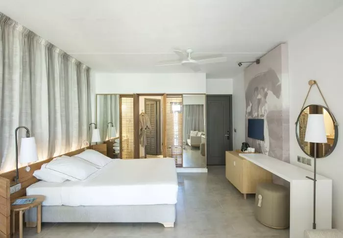 De 81 kamers hebben alle volledig of gedeeltelijk uitzicht op zee en zijn uiteraard voorzien van een terras of balkon, waar u de hele dag van het uitzicht kunt genieten. De kamers zijn in lichte kleuren ingericht. Door de lichte materialen voelt het geheel licht en luchtig aan.