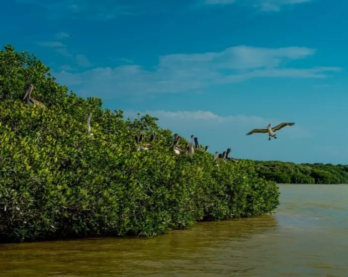 Bij aankomst in Celestun maak je een avontuurlijke boottocht door het nationale park, dat bekend staat om zijn mangrovebomen en indrukwekkende vogels. Een groot deel van het jaar kun je hier groepen fascinerende, roze flamingo’s zien, die net als veel andere exotische vogels hier hun thuis hebben. Er is over het algemeen een overvloed aan wilde dieren in Celestun, dus houd je ogen open – misschien heb je wel het geluk om onderweg een krokodil te zien. De boottocht duurt ongeveer anderhalf uur, waarin de gids zijn kennis van het gebied met je deelt.
