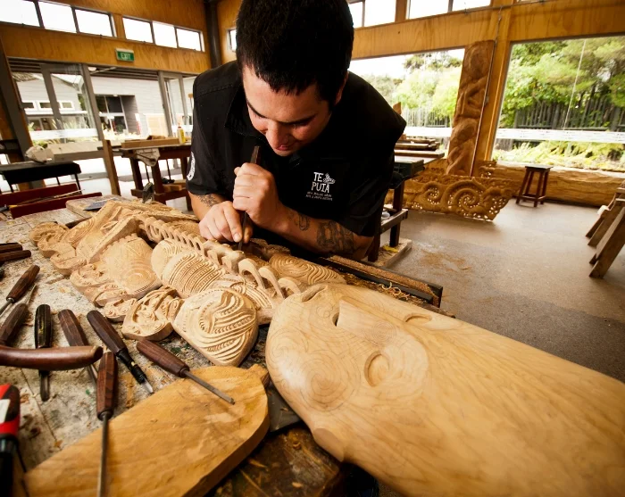 In Te Puia vindt u ook het New Zealand Māori Arts and Crafts Institute, waar u kunt zien hoe er volgens eeuwenoude tradities geweven en houten beeldhouwwerken worden gemaakt. Ook heeft u de kans om te genieten van een traditioneel Māori-cultureel optreden.