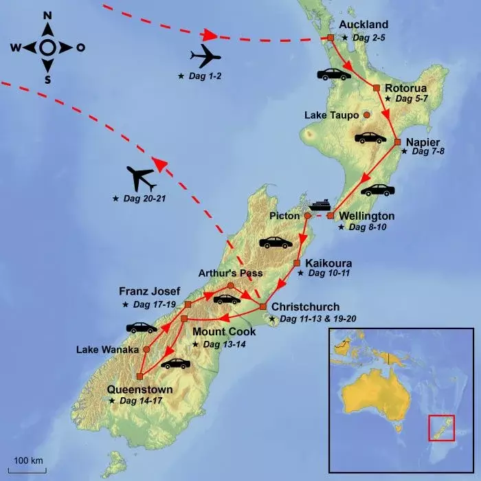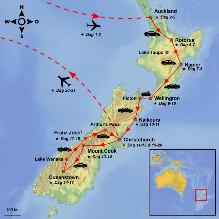 Afstand van Christchurch naar Aoraki/Mt. Cook: ca. 330 km (rechtstreeks)