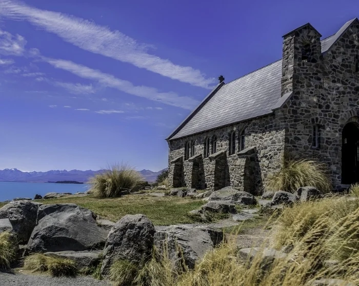 We raden aan om te stoppen bij Lake Tekapo (Takapō), waar het turquoise water en het kleine stenen kerkje, de Church of the Good Shepherd, een iconisch uitzicht vormen.