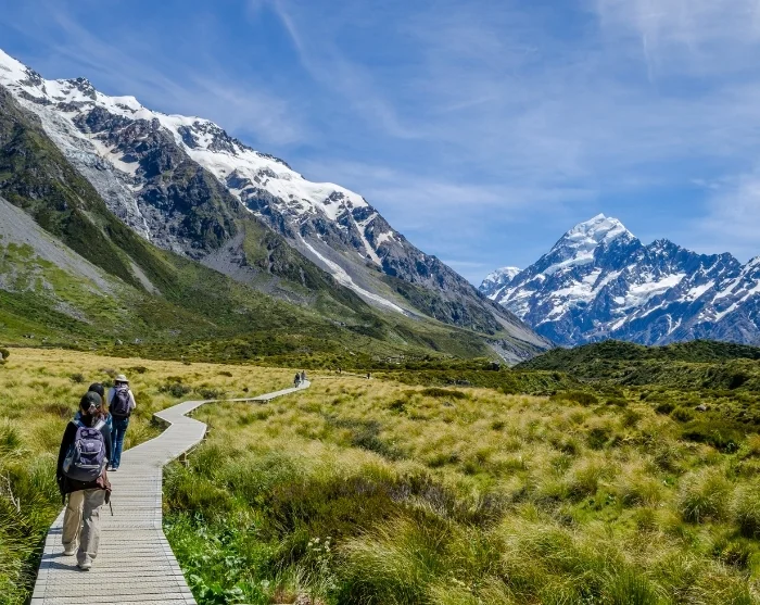 Hier kunt u op eigen gelegenheid gaan wandelen op een van de vele routes in het gebied, die variëren in lengte en moeilijkheidsgraad – bijv. de Kea Point Track (eenvoudig – ca. 3 km), de Tasman Glacier View Track (eenvoudig – ca. 2,5 km) en de Hooker Valley Track (eenvoudig – ca. 10 km). Houd er rekening mee dat een deel van de Hooker Valley Track momenteel is afgesloten vanwege erosie en de bouw van een nieuwe hangbrug, die naar verwachting eind 2026 voltooid zal zijn.