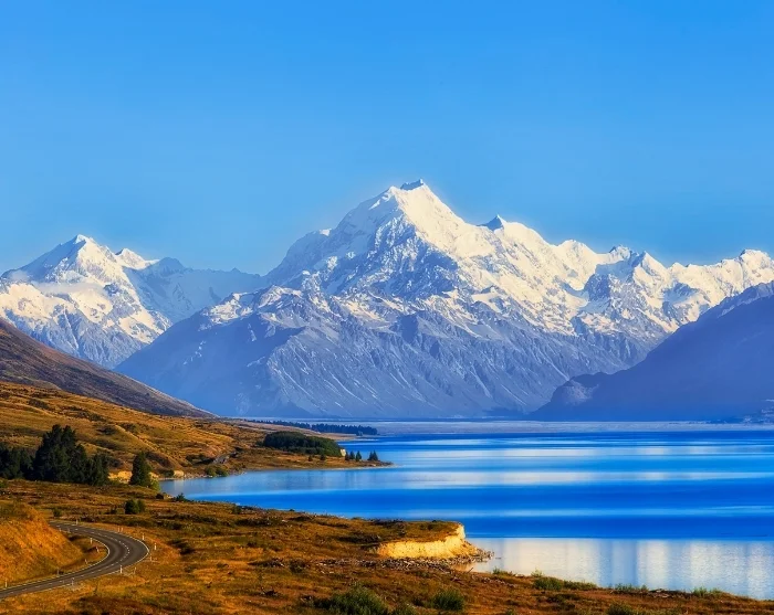 Vanaf hier vervolgt u uw reis langs de oevers van Lake Pukaki (Pūkahaki), waar u langzaam het indrukwekkende silhouet van Mount Cook (Aoraki), de hoogste berg van Nieuw-Zeeland, ziet opdoemen aan de horizon op maar liefst 3.724 meter hoogte.