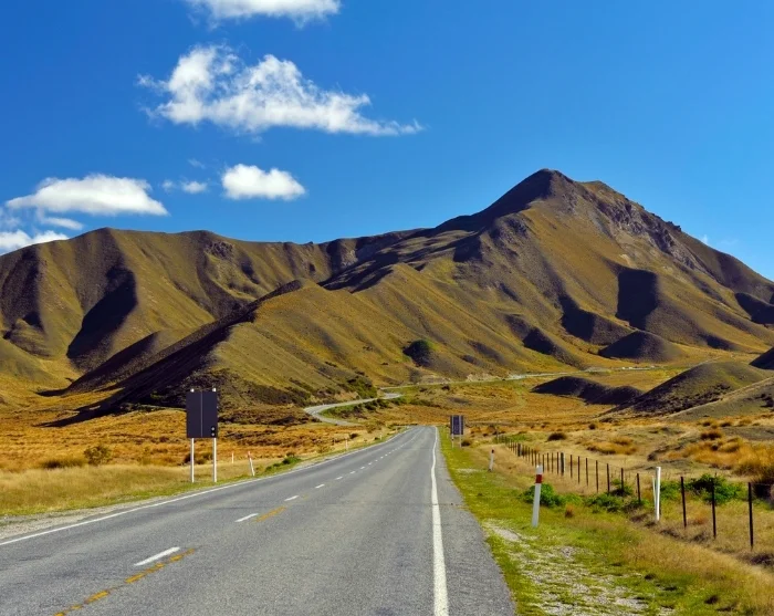 Vanaf hier vervolgt u uw reis door de goudkleurige hooglanden en langs Omarama, waarna de weg zich een weg kronkelt over de indrukwekkende Lindis Pass – een uitgestrekte bergketen met zacht glooiende heuvels zover het oog reikt.