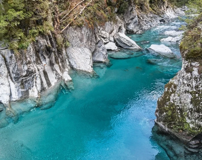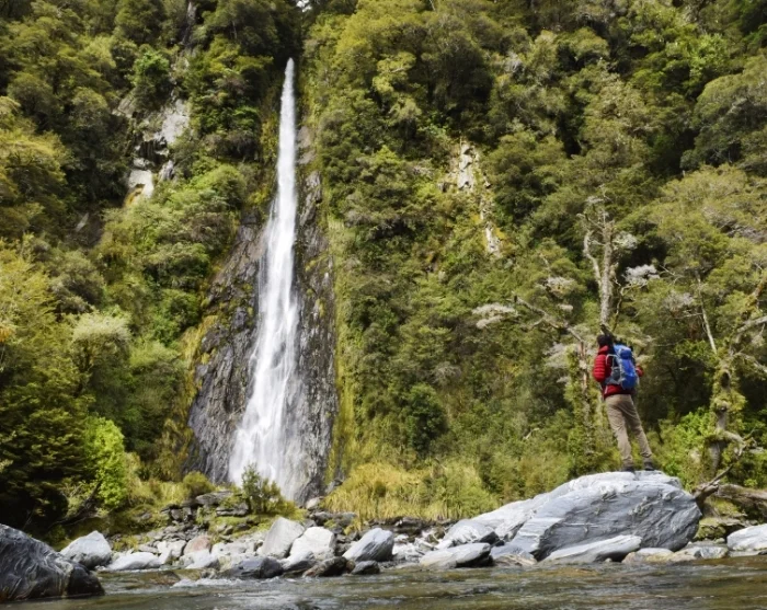 Wanneer u door Nationaal Park Mount Aspiring rijdt, is een korte wandeling over het Blue Pools Track een aanrader. Dit wandelpad voert u door een mooi beukenbos naar kraakheldere turquoise waterpoelen. Even verderop kunt u stoppen bij Thunder Creek Falls: een 28 meter hoge waterval, omringd door dichtbegroeid bos – een schitterende plek voor een mooie foto.
