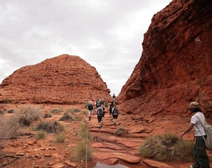 Uw reis gaat verder van Uluru naar Kata Tjuta, dat ongeveer 50 km ten westen ligt. De naam betekent “veel hoofden”, verwijzend naar de 36 ronde rotsformaties die opvallend uit het landschap oprijzen. Dit gebied is heilig voor de Anangu, maar gelukkig zijn er diverse indrukwekkende gedeelten opengesteld voor bezoekers. Een geliefde wandeling voert door de Walpa Gorge, waar uw gids vertelt over de fascinerende geologie en de diepe band die de lokale Inheemse bevolking met deze bijzondere plek heeft.