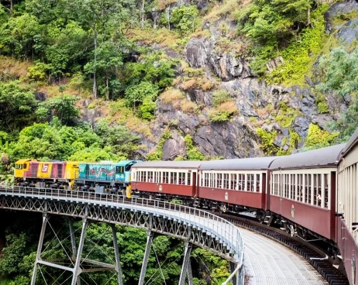 Een andere geliefde excursie is het bezoek aan het bergdorpje Kuranda. Via de schilderachtige Kuranda Railway stijgt u door het regenwoud omhoog, waarna u met de Skyrail Rainforest Cableway over de boomtoppen terug zweeft en geniet van een spectaculair uitzicht over het landschap. In Kuranda zelf kunt u rondsnuffelen op gezellige markten, knusse cafés en lokale galerieën voordat u terugkeert naar Cairns.