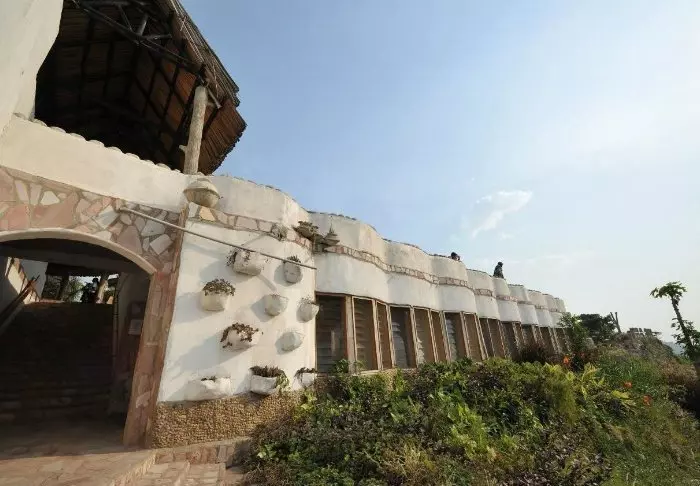 De lodge bestaat uit ”bandas”-hutten, die lijken op de karakteristieke hutten van een Afrikaans dorpje. Vanuit de hutten, die verspreid op de helling liggen, en waarvan er een aantal zijn opgedeeld in etages, heeft u een mooi uitzicht over de vlakten en het traditionele Afrikaanse landschap. De hutten hebben 18 moderne kamers, ingericht met comfortabele bedden en een eigen badkamer.