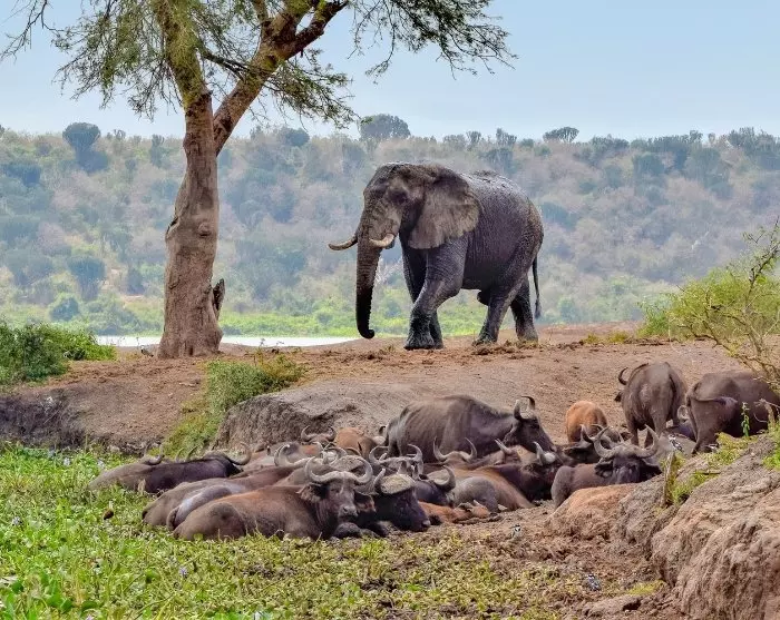 Nationaal Park Queen Elizabeth is het op een na grootste nationaal park van Oeganda, na Murchison Falls, en het populairste van het land. Het heeft een grote biodiversiteit met savanne-, bos-, en moerasgebieden. Dit gevarieerde landschap trekt natuurlijk een groot aantal verschillende dieren aan, en het park is een paradijs voor vogelliefhebbers. Meer dan 600 vogelsoorten en 95 verschillende zoogdieren noemen deze plek hun thuis, er is dus genoeg te zien.