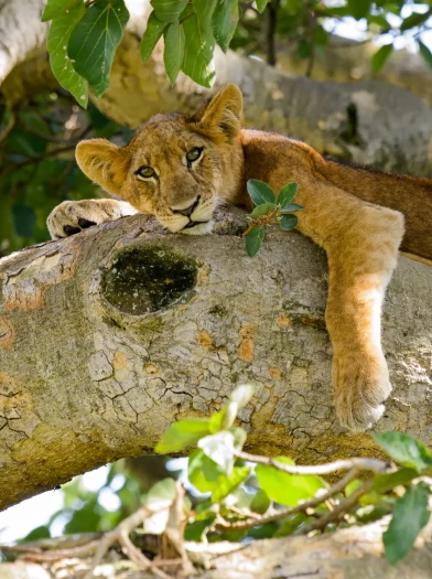 Na het ontbijt vertrekt u naar Bwindi Impenetrable Forest. Maar eerst is er een game drive door het zuidelijke deel van Nationaal Park Queen Elizabeth in een gebied dat Ishasha heet. Deze vlakten zijn vooral bekend om de boomklimmende leeuwen, die graag rusten op de takken van grote Afrikaanse vijgenbomen.